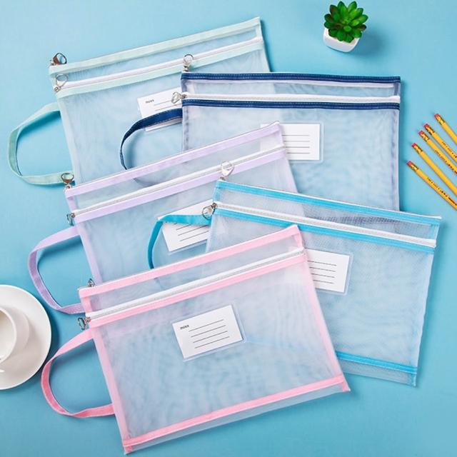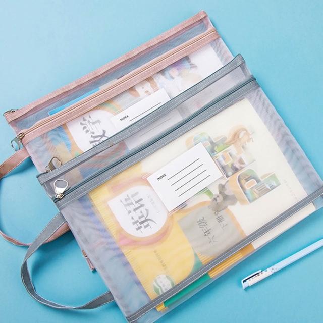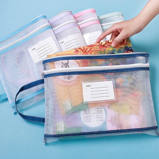 A4雙層文件袋 (A4文件袋 雙層文件袋 網紗袋 手提袋 收納袋 資料袋 文件包 科目分類 學生補習 開學季)