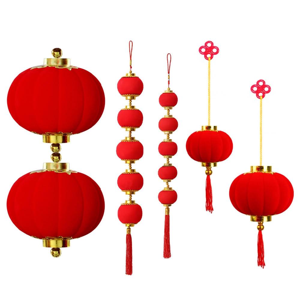 新年喜慶燈籠掛飾 (燈籠 小燈籠串 植絨小燈籠 吊飾 吊件 掛件 新年盆景 居家裝飾 佈置道具)