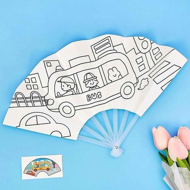 繪畫塗鴉DIY折扇 (DIY折扇 彩繪扇 塗鴉扇 七折扇 紙扇 摺扇 折扇 涼扇 手繪扇子 美勞美術 手作手工)