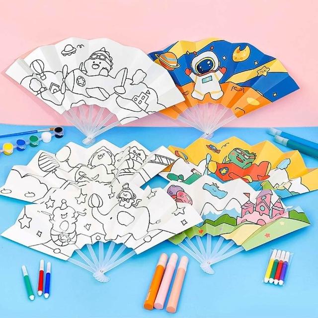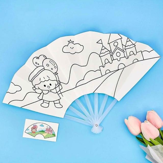 繪畫塗鴉DIY折扇 (DIY折扇 彩繪扇 塗鴉扇 七折扇 紙扇 摺扇 折扇 涼扇 手繪扇子 美勞美術 手作手工)