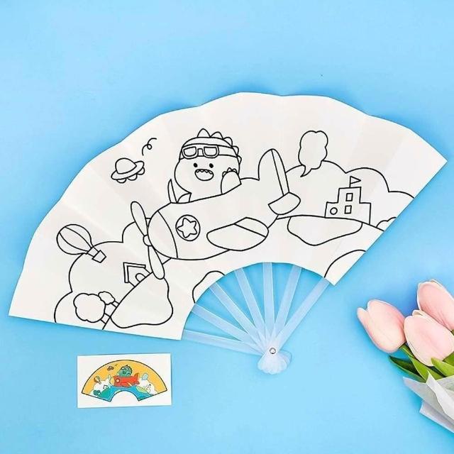 繪畫塗鴉DIY折扇 (DIY折扇 彩繪扇 塗鴉扇 七折扇 紙扇 摺扇 折扇 涼扇 手繪扇子 美勞美術 手作手工)