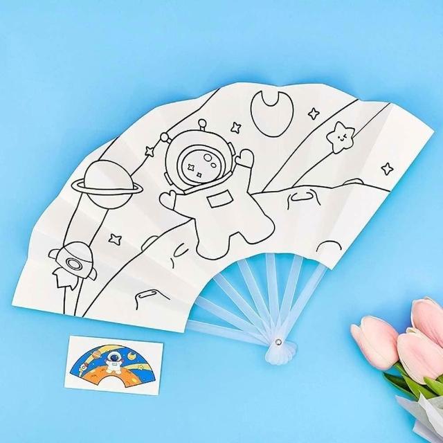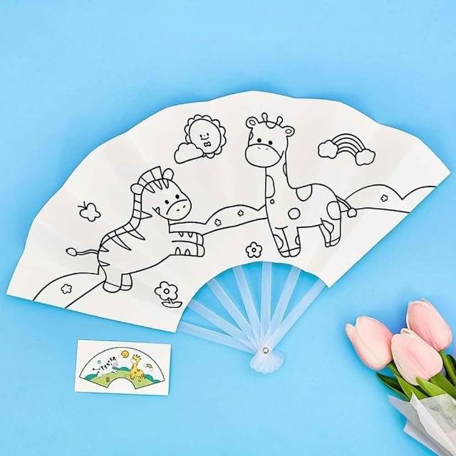 繪畫塗鴉DIY折扇 (DIY折扇 彩繪扇 塗鴉扇 七折扇 紙扇 摺扇 折扇 涼扇 手繪扇子 美勞美術 手作手工)