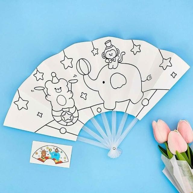 繪畫塗鴉DIY折扇 (DIY折扇 彩繪扇 塗鴉扇 七折扇 紙扇 摺扇 折扇 涼扇 手繪扇子 美勞美術 手作手工)