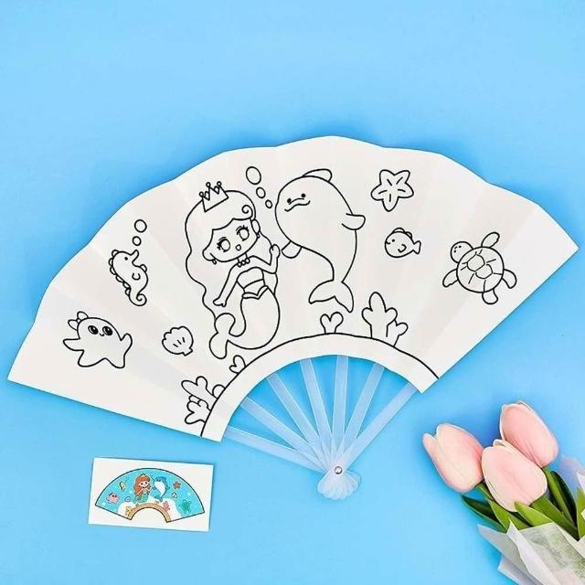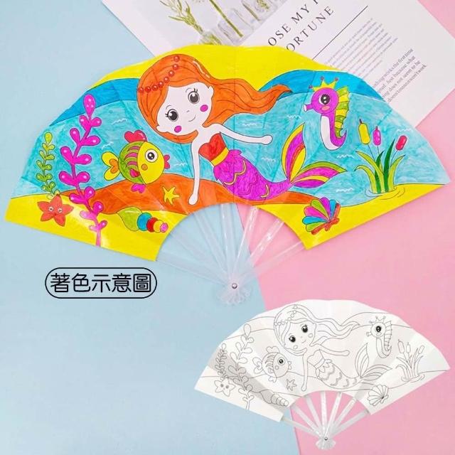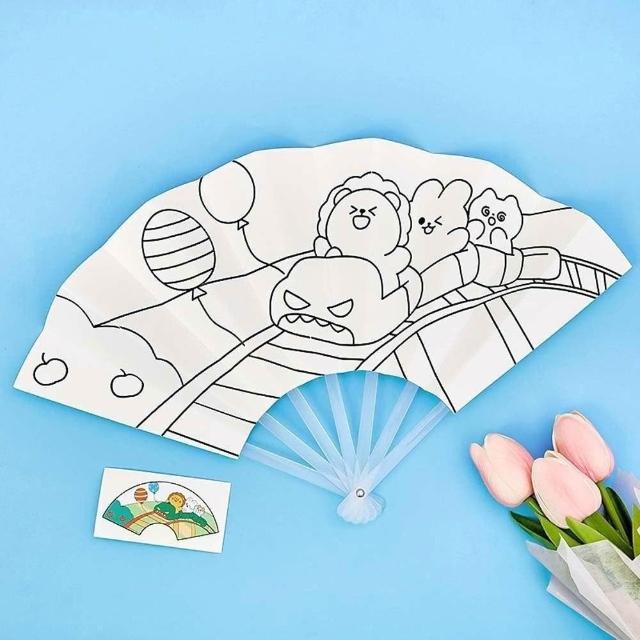 繪畫塗鴉DIY折扇 (DIY折扇 彩繪扇 塗鴉扇 七折扇 紙扇 摺扇 折扇 涼扇 手繪扇子 美勞美術 手作手工)