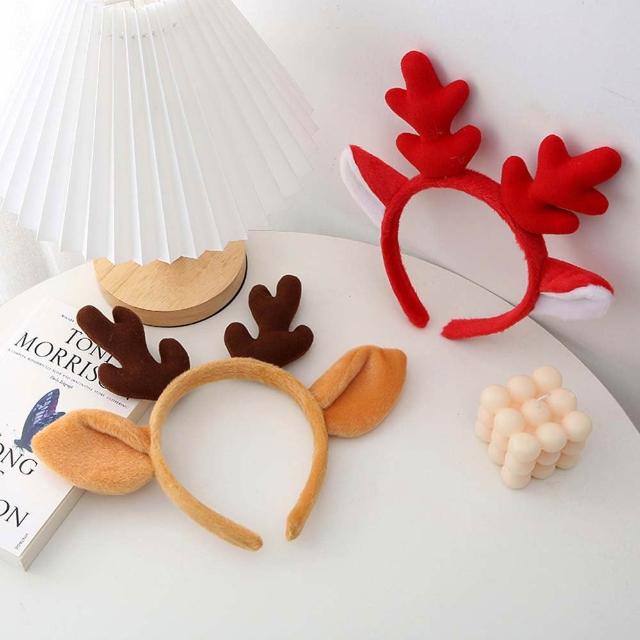聖誕絨毛鹿角髮箍 (聖誕髮箍 麋鹿髮箍 鹿角髮箍 絨毛髮箍 頭飾 裝飾 髮飾 扮演 裝扮 派對道具 耶誕節)