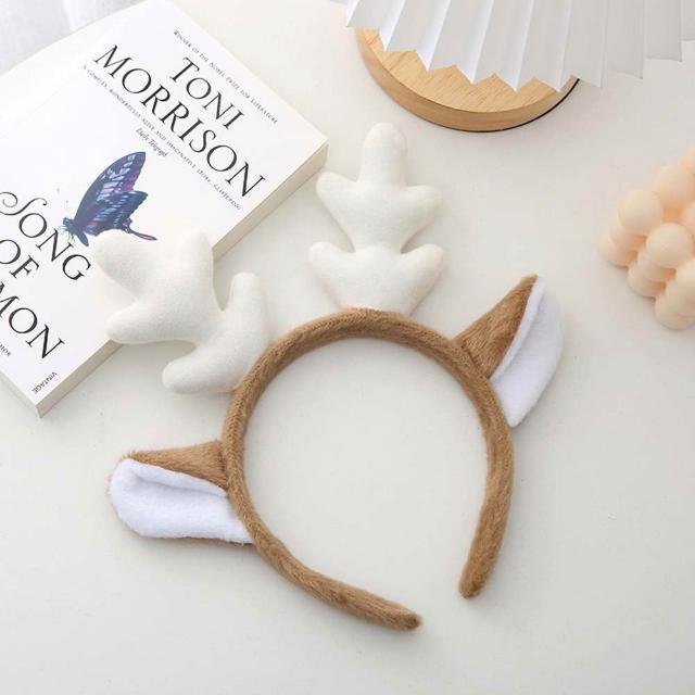 聖誕絨毛鹿角髮箍 (聖誕髮箍 麋鹿髮箍 鹿角髮箍 絨毛髮箍 頭飾 裝飾 髮飾 扮演 裝扮 派對道具 耶誕節)