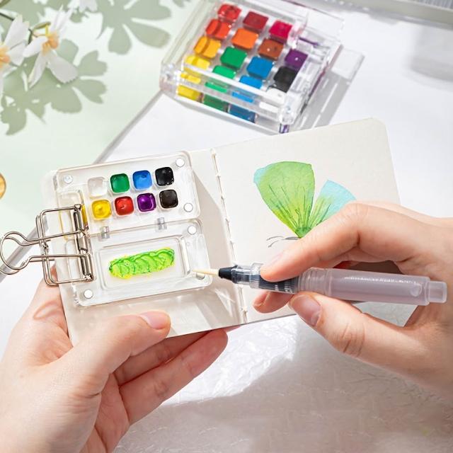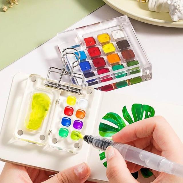 隨身水彩調色盒 (透明調色盒 迷你顏料盒 隨身彩繪 寫生調色盒 顏料盒 水彩分裝 調色盤 顏料盤 戶外寫生)