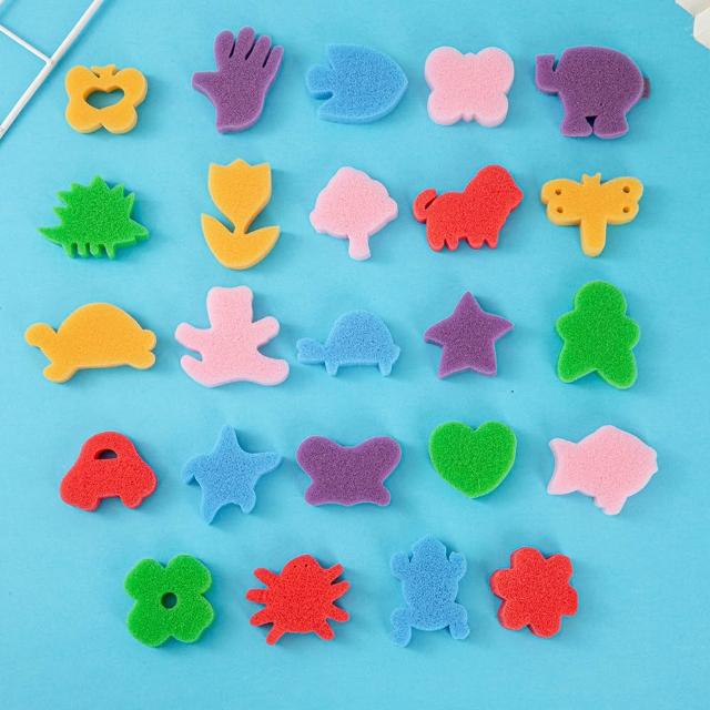 塗鴉印章海綿24入組 ( 多種圖案 蓋章海綿 海綿印章 繪畫用品 刷具 畫具 拓印 彩繪 塗色工具 美術 美勞 )