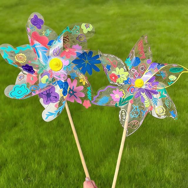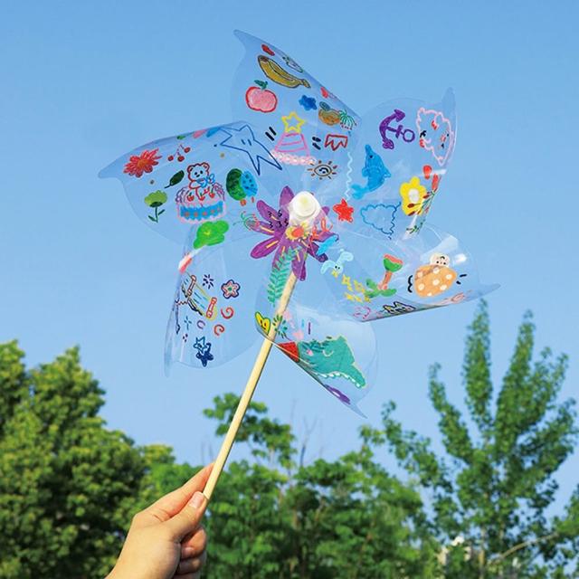 可彩繪透明大風車 ( 透明風車 PVC風車 繪畫風車 彩繪 手繪 塑膠風車 空白款 DIY手工 材料包 美術美勞 )