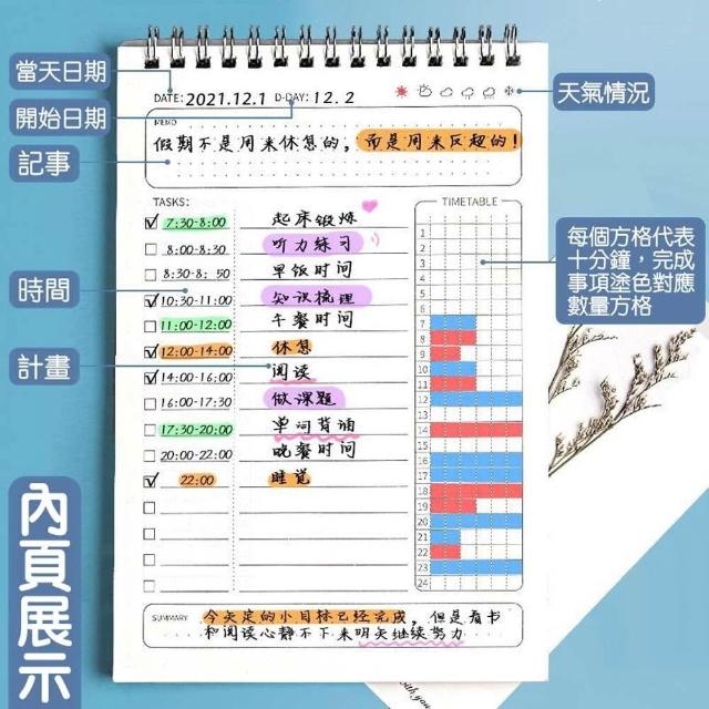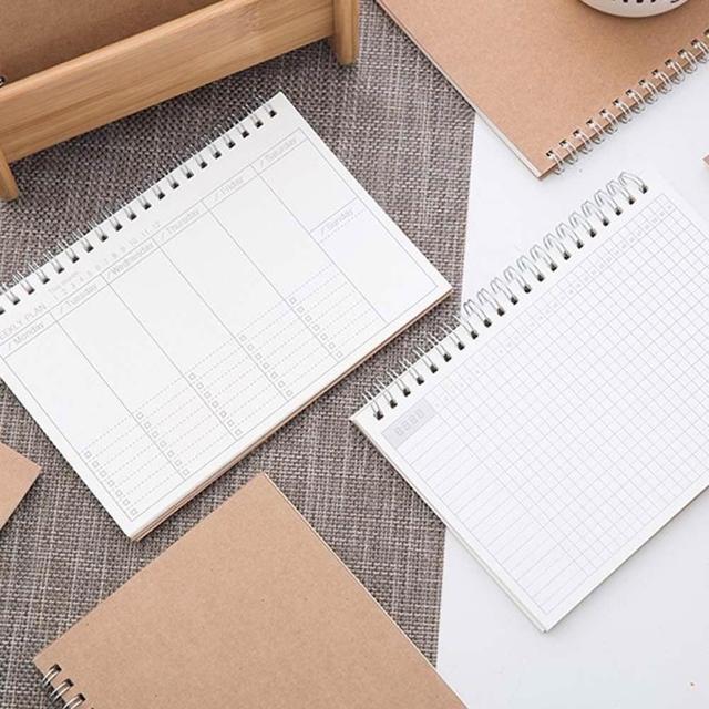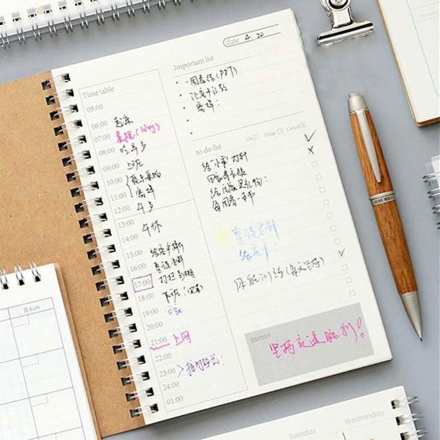 線圈時間計劃本 (筆記本 日記本 記事本 牛皮封面 磨砂封面 日計畫 週計畫 月計劃 手冊 行事曆 每日日程)
