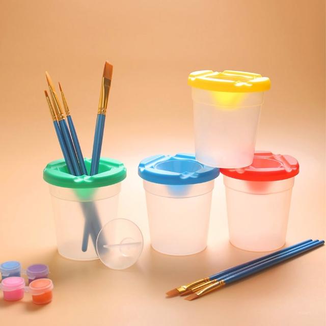 水彩洗筆杯四入組 (顏料杯 水杯 洗筆杯 洗筆筒 塗鴉彩繪 勞作美術 繪畫用具 防漏筆杯 防倒出)