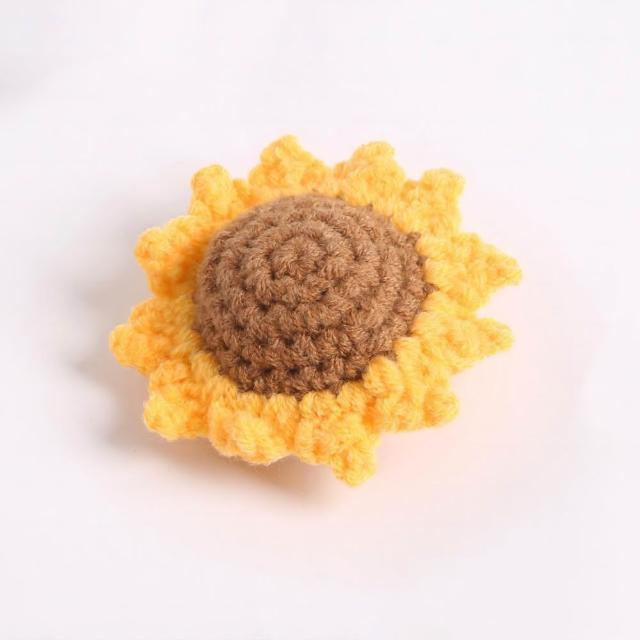 手工編織向日葵 (向日葵 太陽花配件 DIY材料 編織花 毛線花 針織花 仿真花 配飾 掛飾 掛件 裝飾品)