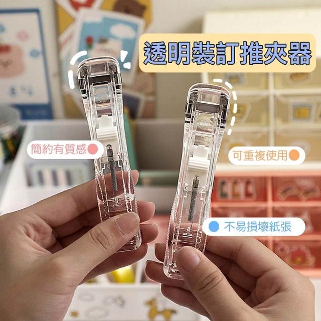 透明裝訂推夾器(裝訂器 裝訂夾 夾紙器 夾子 無針訂書機 文件收納 資料整理 辦公事務 開學季)