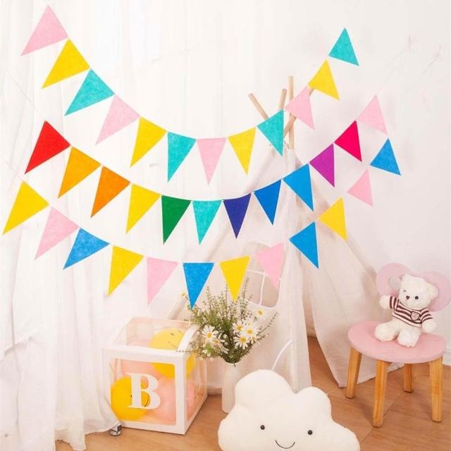 毛氈布三角旗幟 (旗幟 三角旗 掛旗 毛氈旗 拉旗 吊旗 串旗 旗幟 佈置 裝飾 掛飾 生日派對 聖誕節 萬聖節)