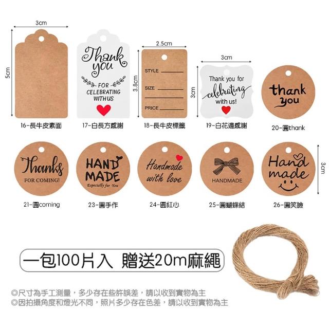 感恩牛皮小吊牌100入 (感謝吊牌 感謝吊卡 感謝小卡 手作DIY 標籤卡 留言卡 紙掛牌 書籤 禮盒卡片)