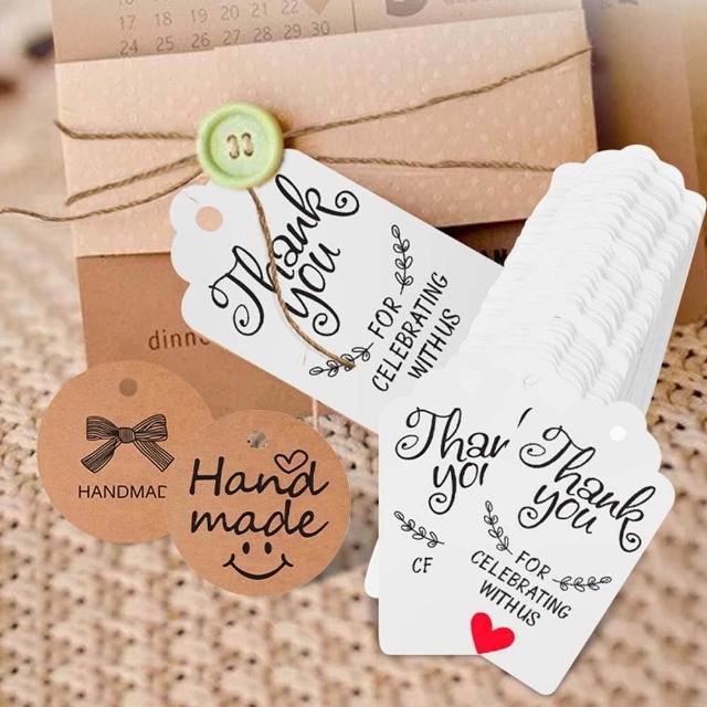 感恩牛皮小吊牌100入 (感謝吊牌 感謝吊卡 感謝小卡 手作DIY 標籤卡 留言卡 紙掛牌 書籤 禮盒卡片)