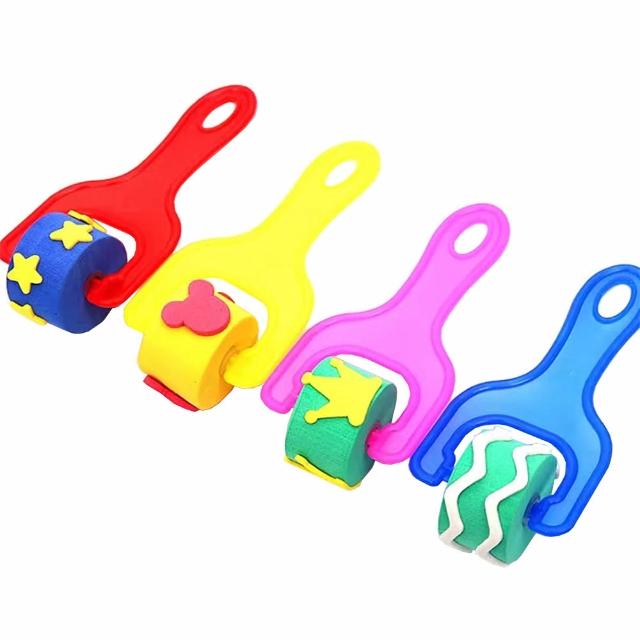 滾輪小印章4入組 ( 海綿印章 滾輪刷 繪畫用品 刷具 畫具 拓印 彩繪 塗色工具 美術 美勞 海綿印章 )