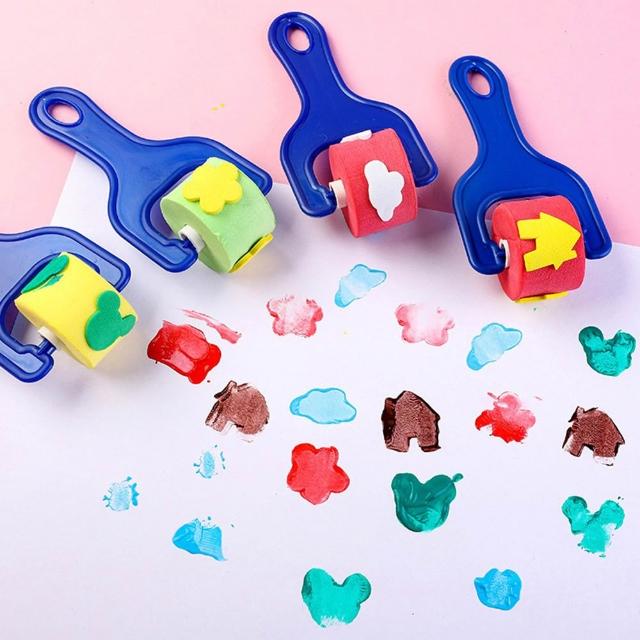 滾輪小印章4入組 ( 海綿印章 滾輪刷 繪畫用品 刷具 畫具 拓印 彩繪 塗色工具 美術 美勞 海綿印章 )
