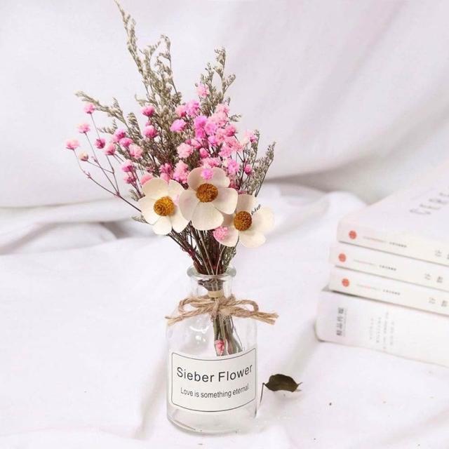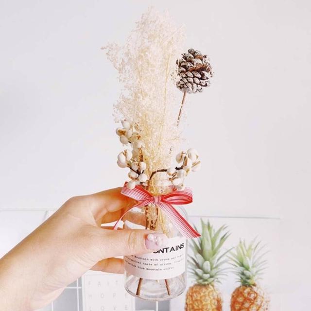 乾燥花卉玻璃瓶 (玻璃花瓶 乾燥花 兔尾草 乾花 棉花 桌面玻璃瓶 裝飾花瓶 拍照花束 擺拍 拍攝道具)