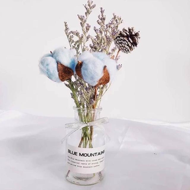 乾燥花卉玻璃瓶 (玻璃花瓶 乾燥花 兔尾草 乾花 棉花 桌面玻璃瓶 裝飾花瓶 拍照花束 擺拍 拍攝道具)