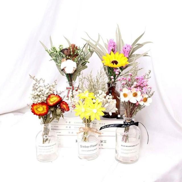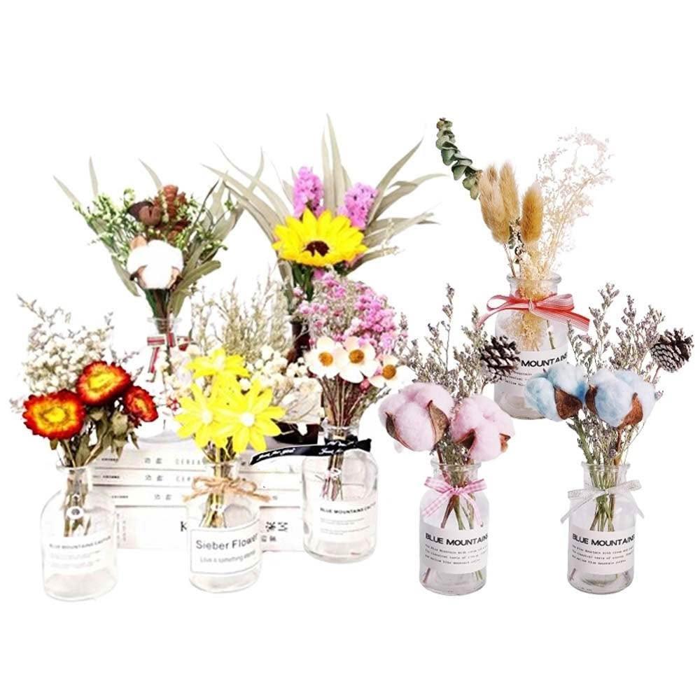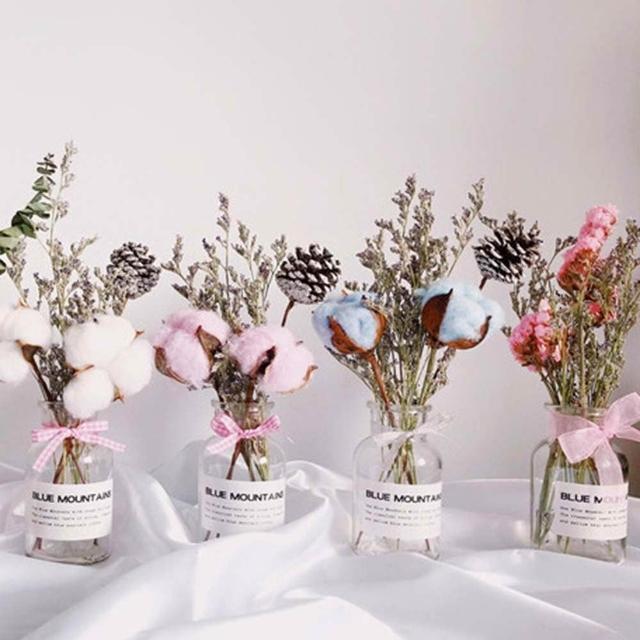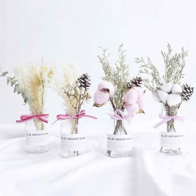乾燥花卉玻璃瓶 (玻璃花瓶 乾燥花 兔尾草 乾花 棉花 桌面玻璃瓶 裝飾花瓶 拍照花束 擺拍 拍攝道具)