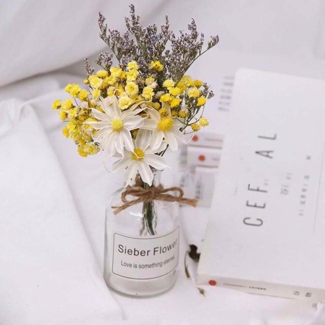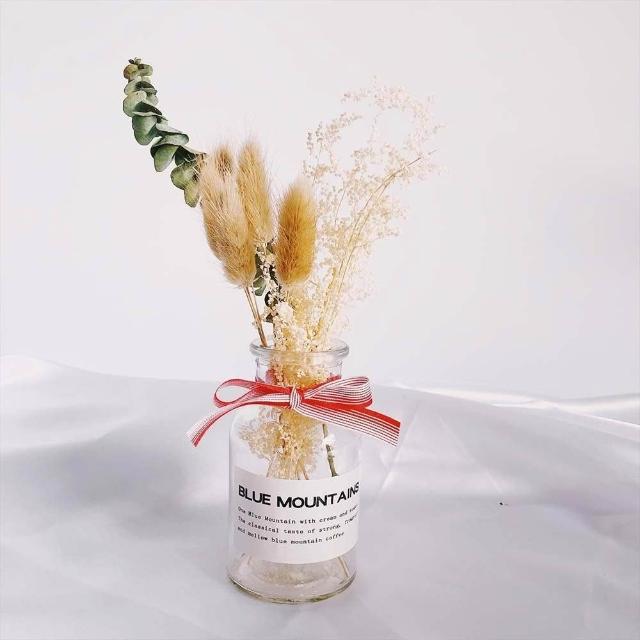 乾燥花卉玻璃瓶 (玻璃花瓶 乾燥花 兔尾草 乾花 棉花 桌面玻璃瓶 裝飾花瓶 拍照花束 擺拍 拍攝道具)
