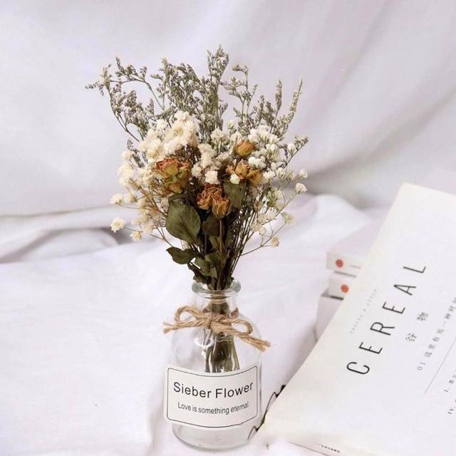 乾燥花卉玻璃瓶 (玻璃花瓶 乾燥花 兔尾草 乾花 棉花 桌面玻璃瓶 裝飾花瓶 拍照花束 擺拍 拍攝道具)