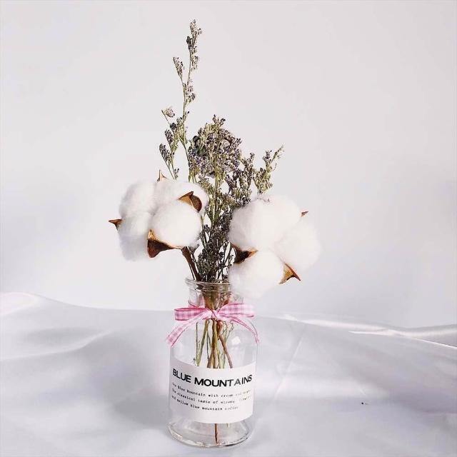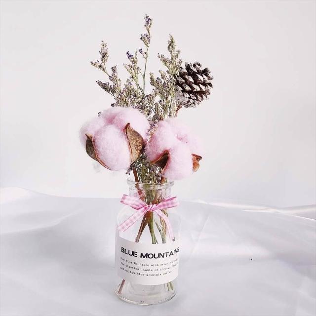 乾燥花卉玻璃瓶 (玻璃花瓶 乾燥花 兔尾草 乾花 棉花 桌面玻璃瓶 裝飾花瓶 拍照花束 擺拍 拍攝道具)