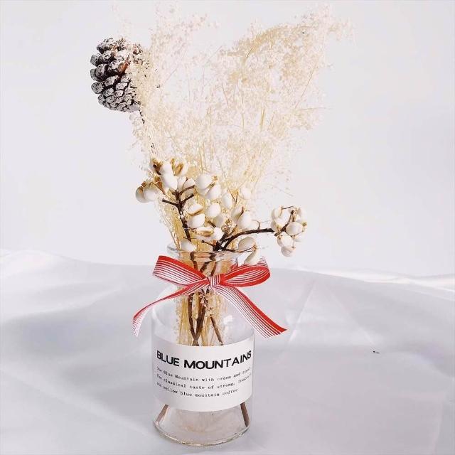 乾燥花卉玻璃瓶 (玻璃花瓶 乾燥花 兔尾草 乾花 棉花 桌面玻璃瓶 裝飾花瓶 拍照花束 擺拍 拍攝道具)
