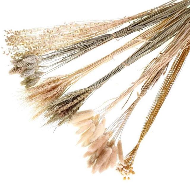 天然乾燥花束 (天然麥穗 兔尾草 寶石草 苦麻 快樂草 相思豆 情人草 勿忘我 燕麥 水晶草 乾燥花 居家佈置)