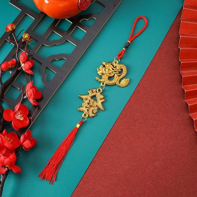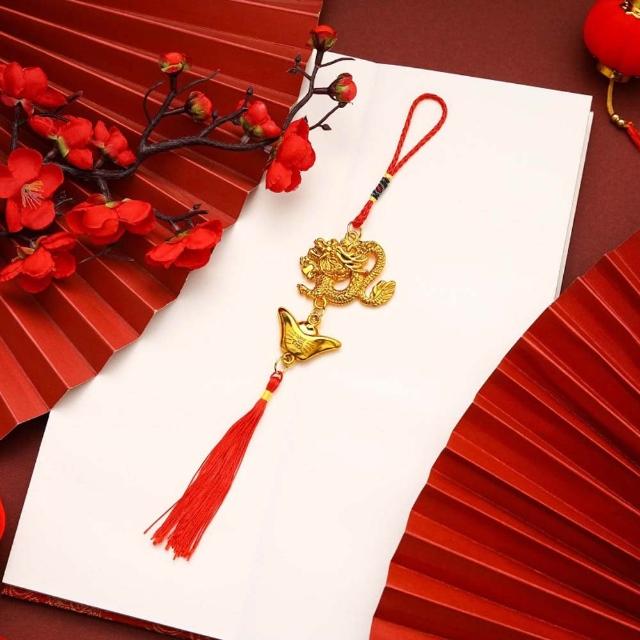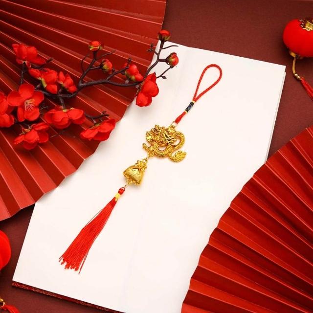 金色祥龍流蘇掛飾 (新年掛飾 金色吊飾 掛件 配件 新春 過年 隨身裝飾 包包掛飾 服裝配飾)