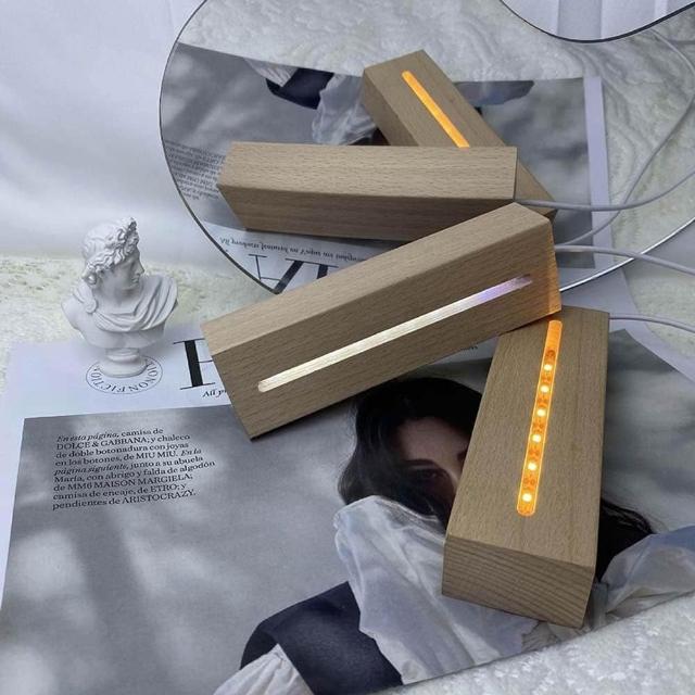 LED實木燈底座(LED燈座 圓形 長形實木 底座 打底 浮游花 水晶底座 能量石 壓克力 小夜燈 鹽燈 夜燈)