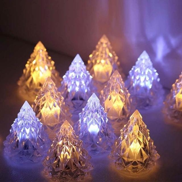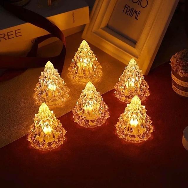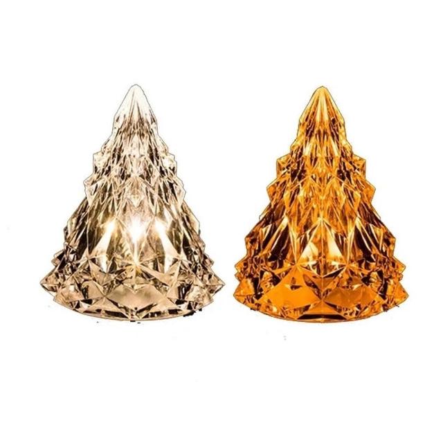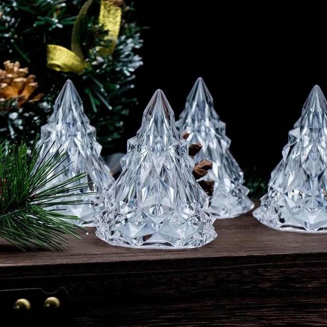 仿水晶聖誕樹夜燈 (聖誕節 LED聖誕樹小夜燈 蠟燭燈 仿真水晶 鑽石 冰山 桌面裝飾 擺放場景 燈光 派對裝飾 耶誕)