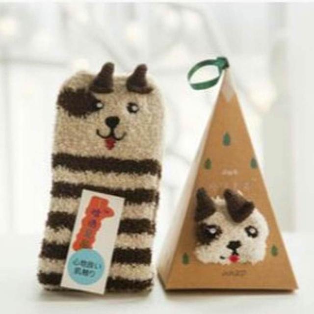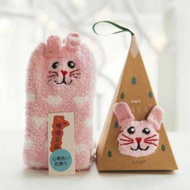 聖誕三角立體襪 (珊瑚絨襪 毛襪 禮盒 動物立體耳朵 襪子 成人襪 三角形禮盒 短襪 聖誕節 聖誕襪)