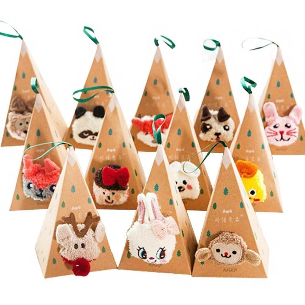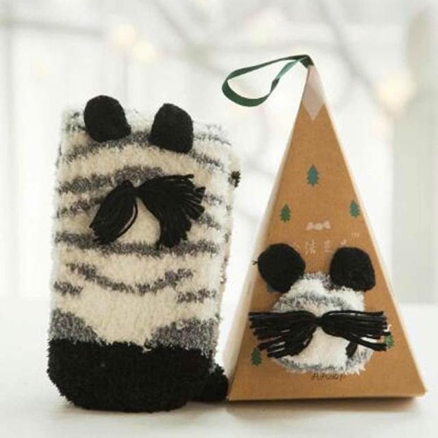 聖誕三角立體襪 (珊瑚絨襪 毛襪 禮盒 動物立體耳朵 襪子 成人襪 三角形禮盒 短襪 聖誕節 聖誕襪)