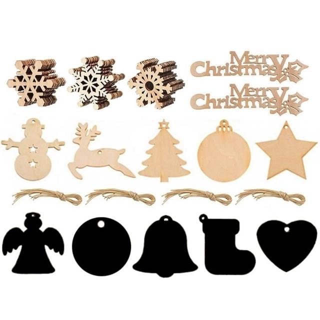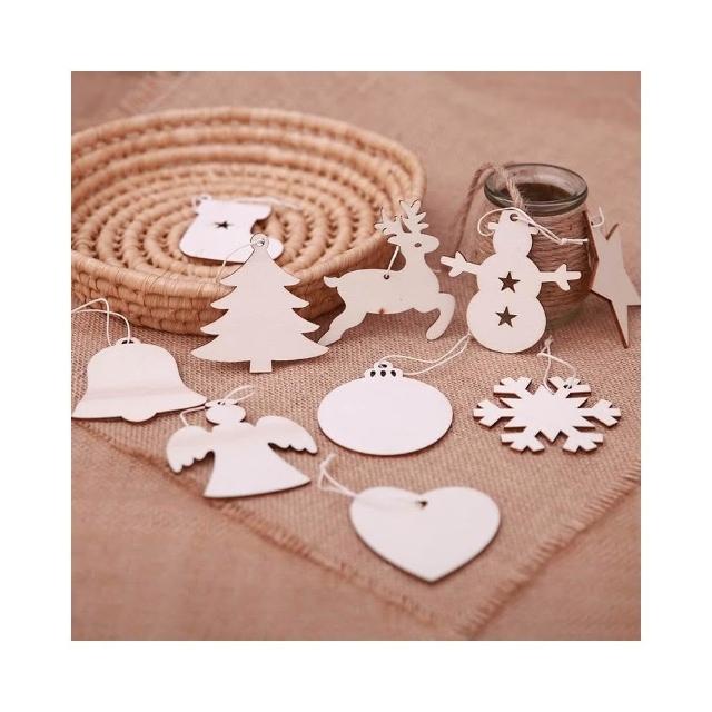 聖誕木質掛飾 (彩繪木片10入 小黑板 DIY手作 掛飾 吊牌 手寫掛牌 木牌 空白菜單 招牌 告示 標示牌 聖誕樹)