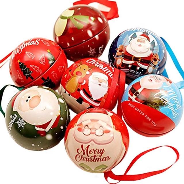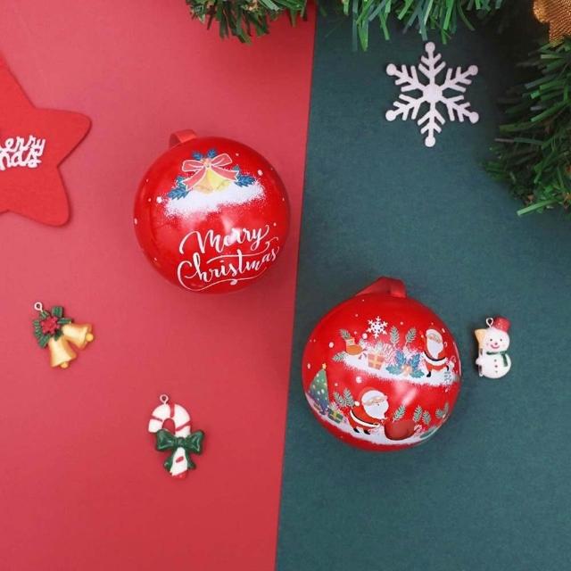 聖誕禮物球 (聖誕節 禮物球 鐵盒 聖誕球 馬口鐵 圓型鐵盒 裝飾 掛飾 耶誕節 糖果盒 禮物盒 耶誕 聖誕)