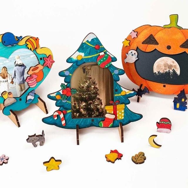 DIY彩繪木質相框 (DIY 彩繪 木質相框 立體相框 手作 桌面擺件 創意繪畫 聖誕節 聖誕節 萬聖節)