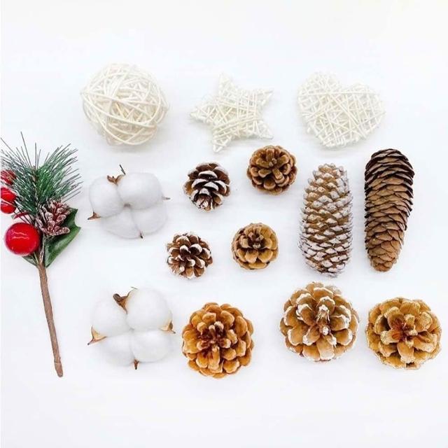 聖誕松果套組 (DIY松果 乾燥植物 森林材料包 手作 復古 乾燥花 乾燥草 拍照道具 聖誕節)