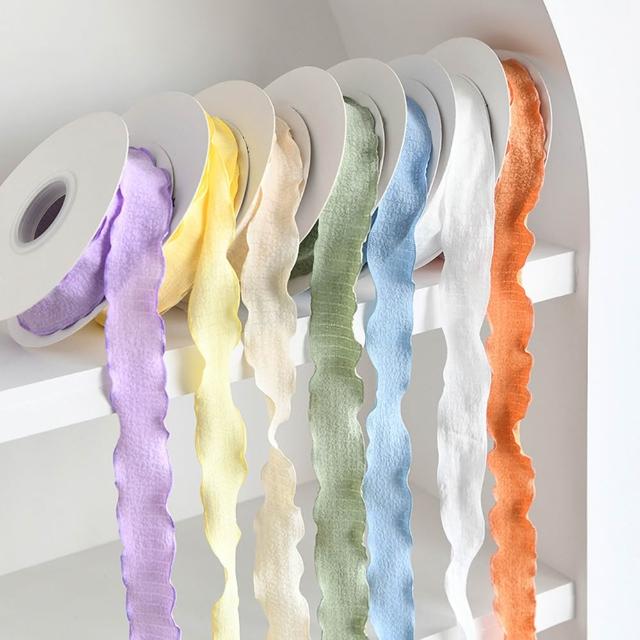 花邊褶皺絲帶(寬2.5cm 花束彩帶 荷葉邊 波浪邊 裝飾彩帶 花藝織帶 禮盒緞帶 DIY材料 包裝耗材)