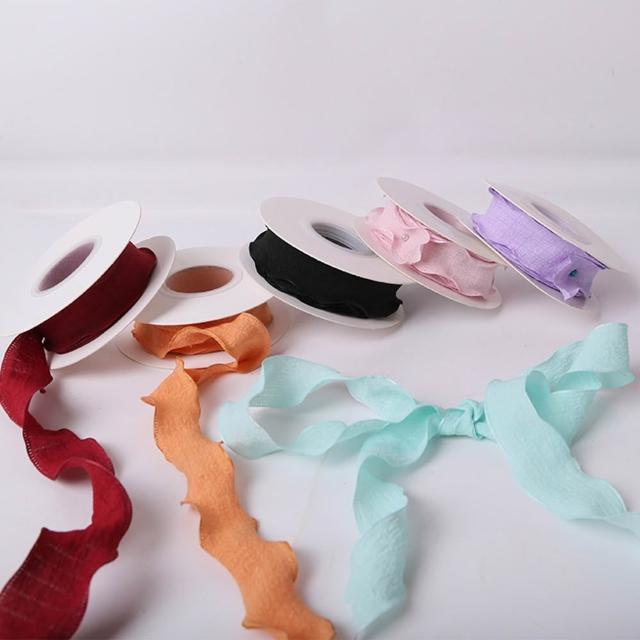 花邊褶皺絲帶(寬2.5cm 花束彩帶 荷葉邊 波浪邊 裝飾彩帶 花藝織帶 禮盒緞帶 DIY材料 包裝耗材)