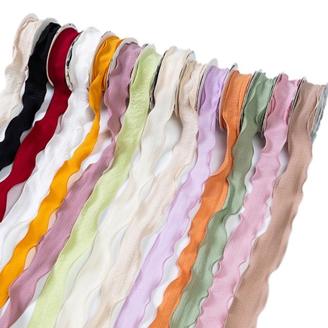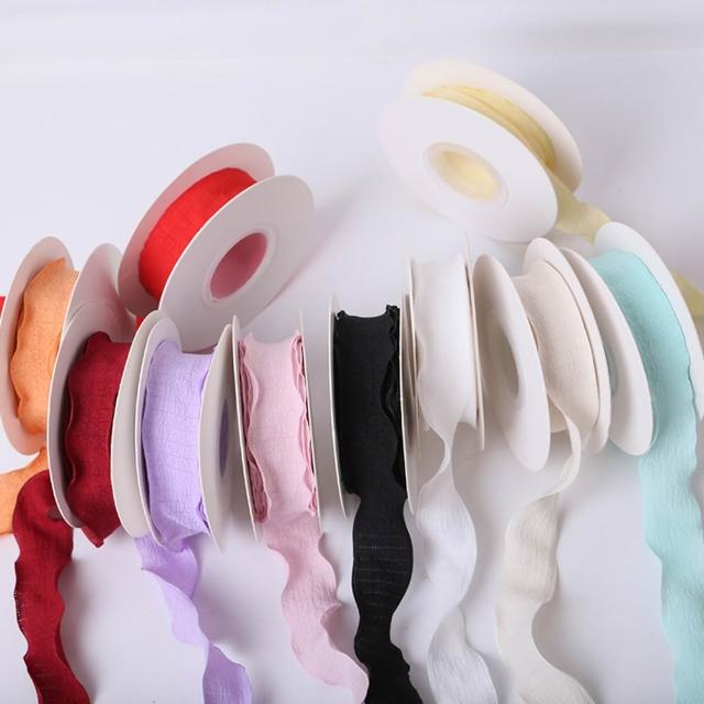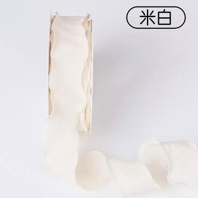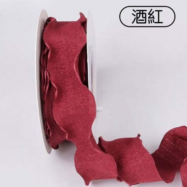 花邊褶皺絲帶(寬2.5cm 花束彩帶 荷葉邊 波浪邊 裝飾彩帶 花藝織帶 禮盒緞帶 DIY材料 包裝耗材)