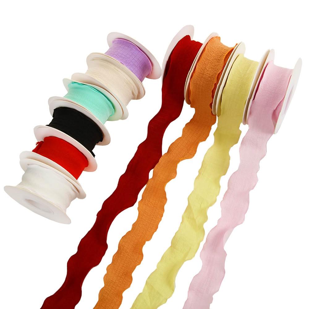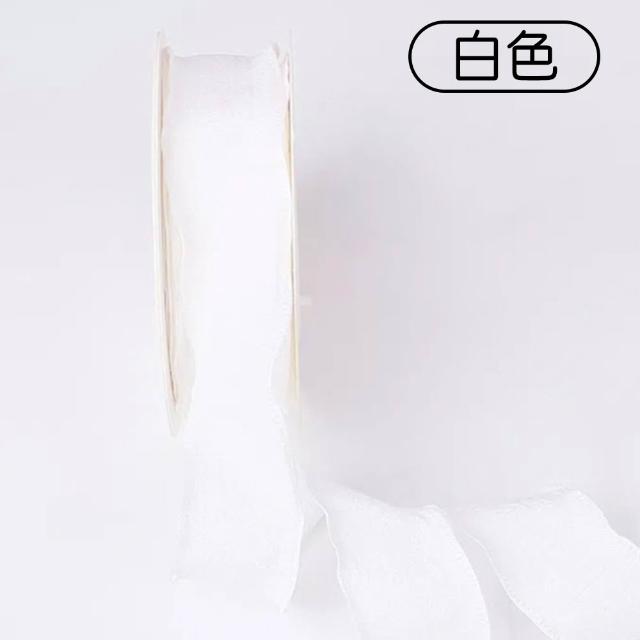 花邊褶皺絲帶(寬2.5cm 花束彩帶 荷葉邊 波浪邊 裝飾彩帶 花藝織帶 禮盒緞帶 DIY材料 包裝耗材)