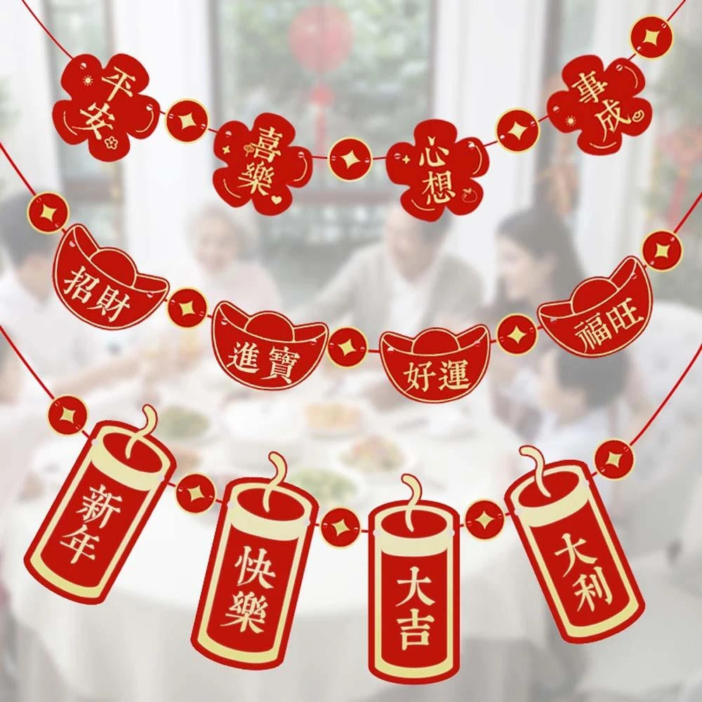 新年紙質佈置掛旗 (新年 春節 佈置掛旗 掛繩吊旗 拉旗 拉花 裝飾旗 旗子 派對旗 活動佈置 新春 過年 農曆)