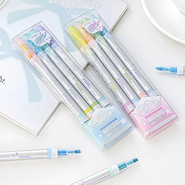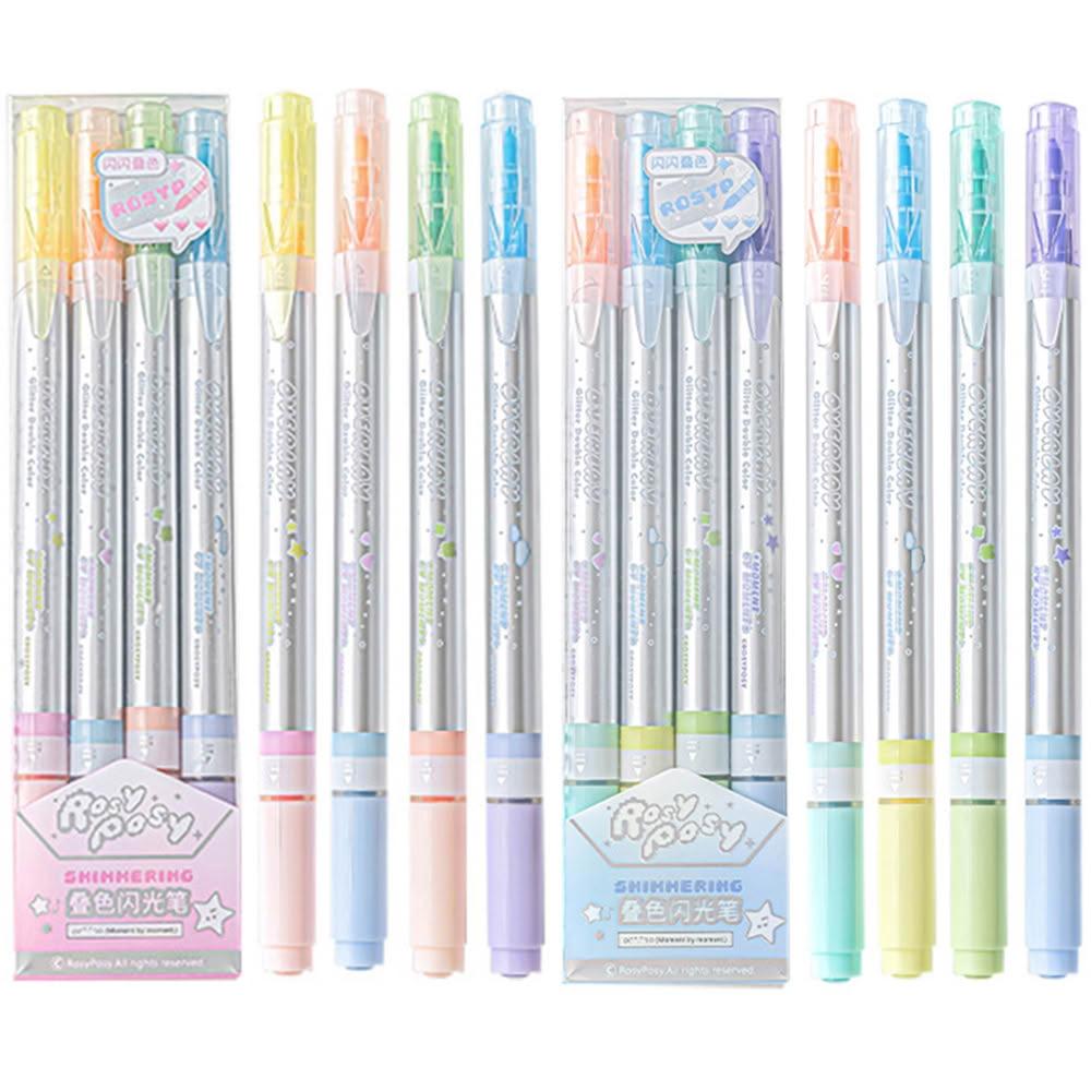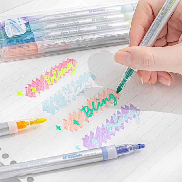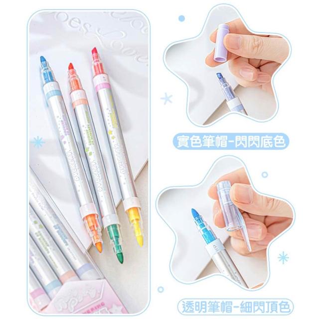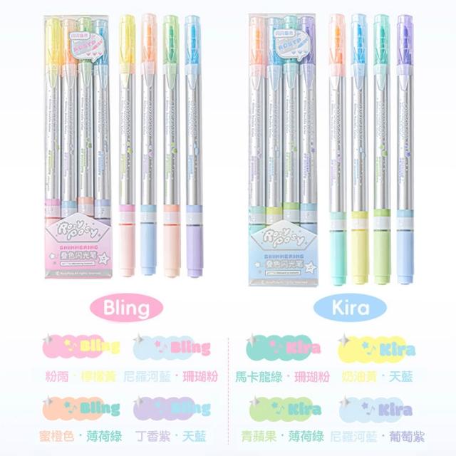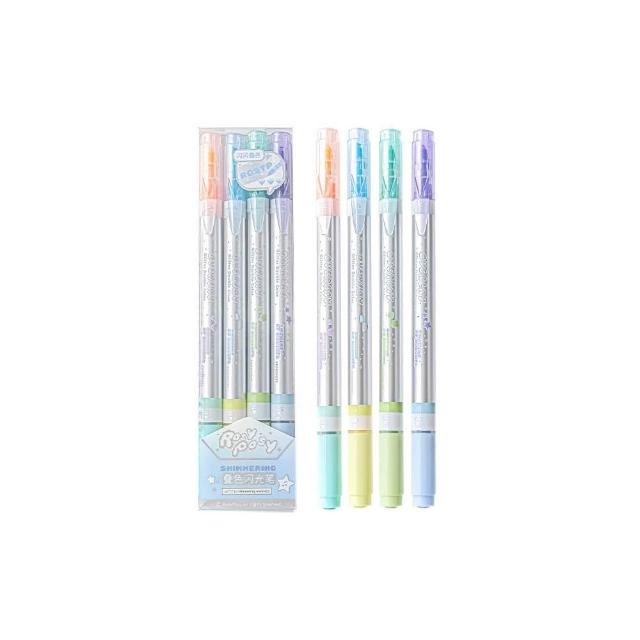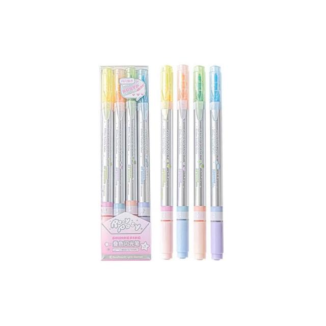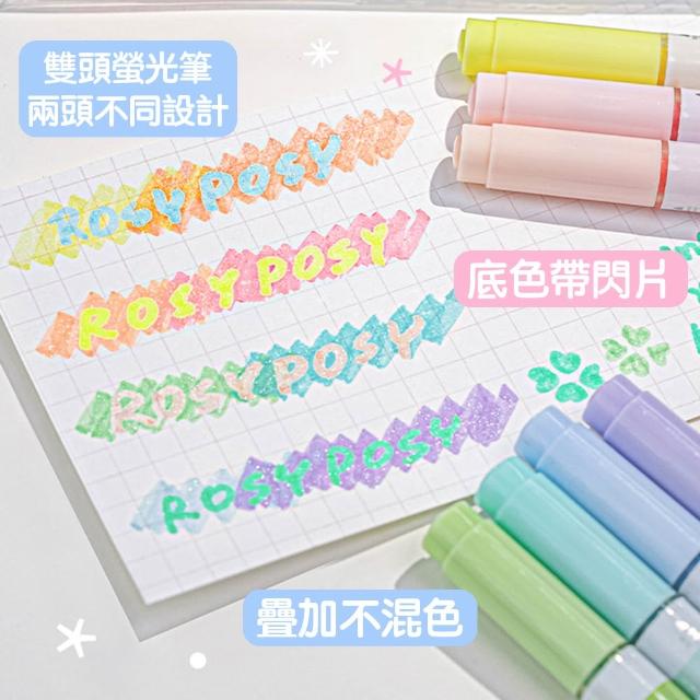 疊色閃光筆4入組 (疊色螢光筆 雙頭螢光筆 手帳筆 記號筆 劃重點 學生文具 開學季)