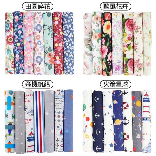 手作拼布材料7入組 (DIY布料 小布頭 花布 棉布 碎花 格子 波點 手工藝材料)