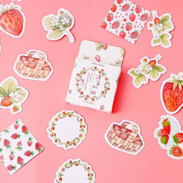 草莓乳酪盒裝貼紙 (裝飾貼紙 手帳貼紙 封口貼紙 包裝貼紙 咕卡貼紙 手作DIY )