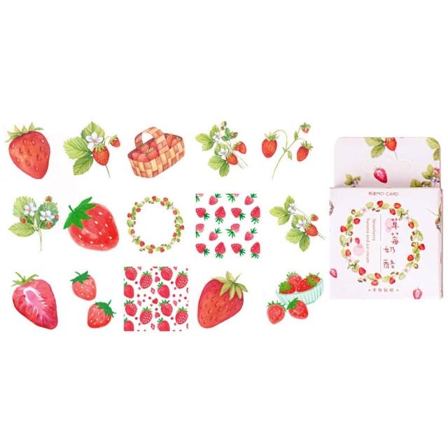草莓乳酪盒裝貼紙 (裝飾貼紙 手帳貼紙 封口貼紙 包裝貼紙 咕卡貼紙 手作DIY )