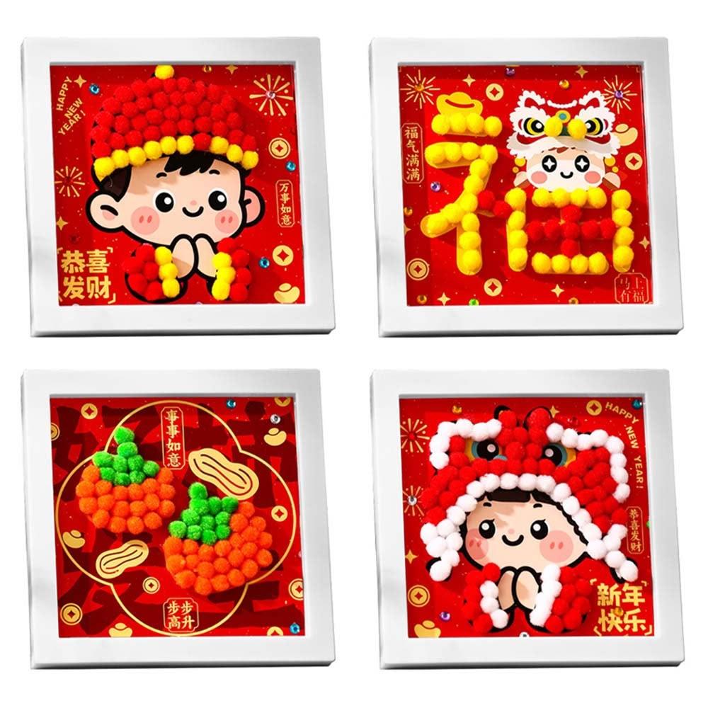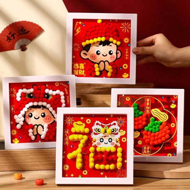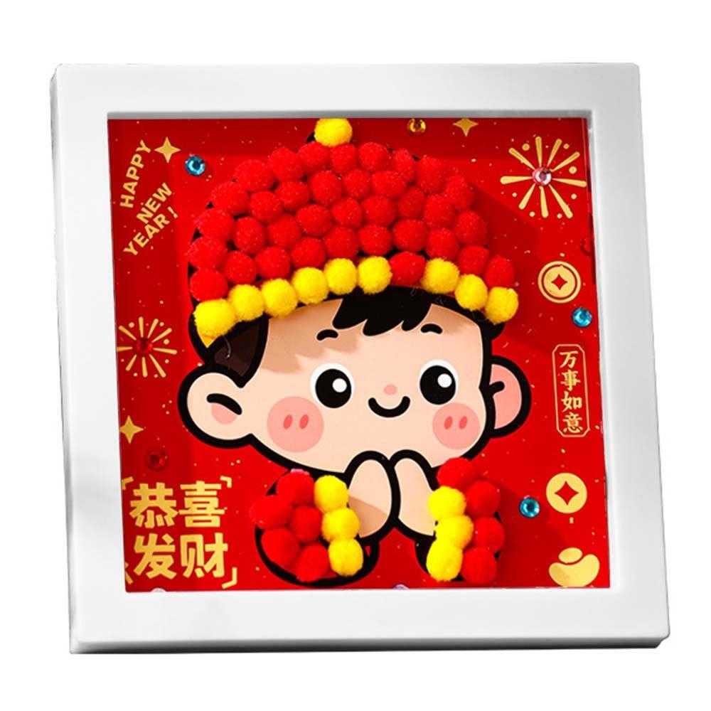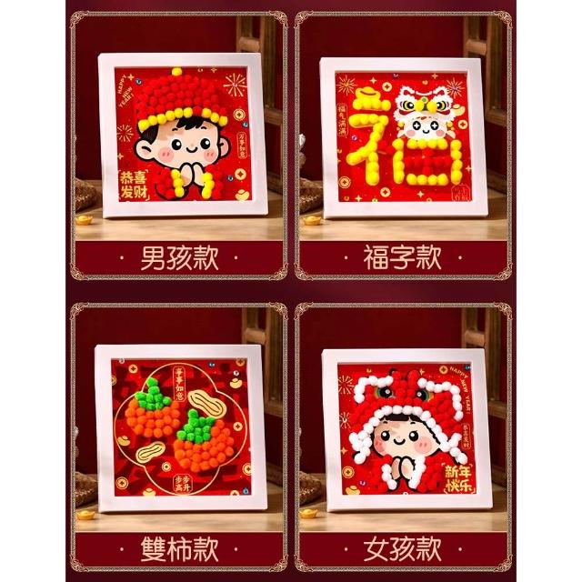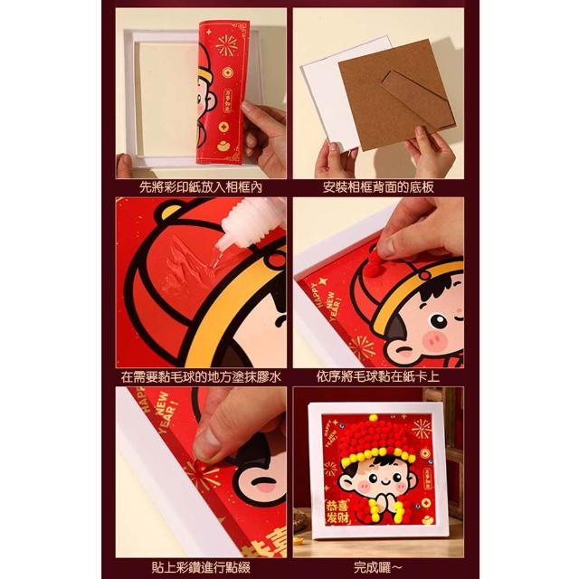 DIY新年毛球相框畫 (DIY材料包 趣味手作 手作相框 新年擺飾 擺件 新春 過年)