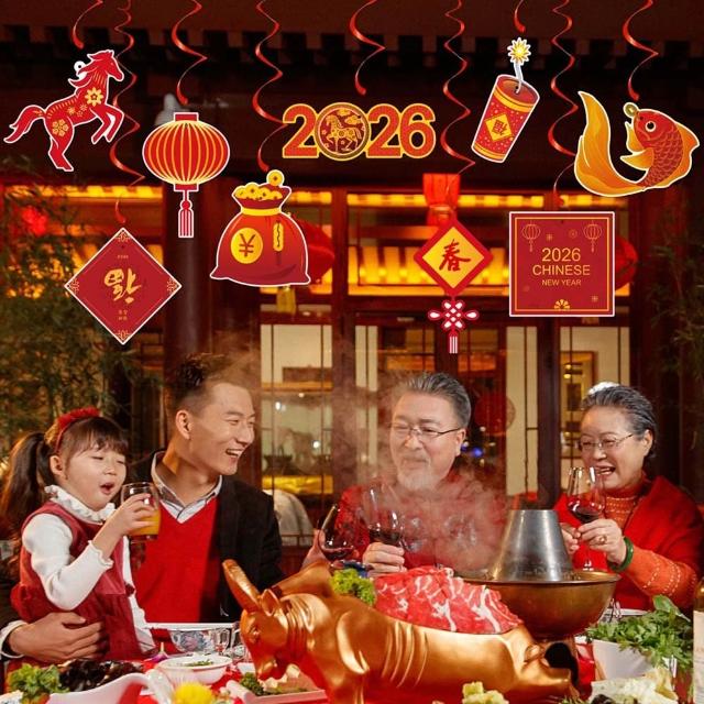 2026年螺旋掛旗 (新年掛飾 佈置旗幟 掛旗 旗子 吊飾 新春佈置 過年 農曆年 居家裝飾 牆面擺飾)